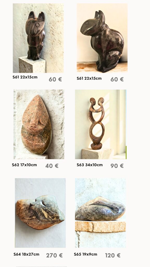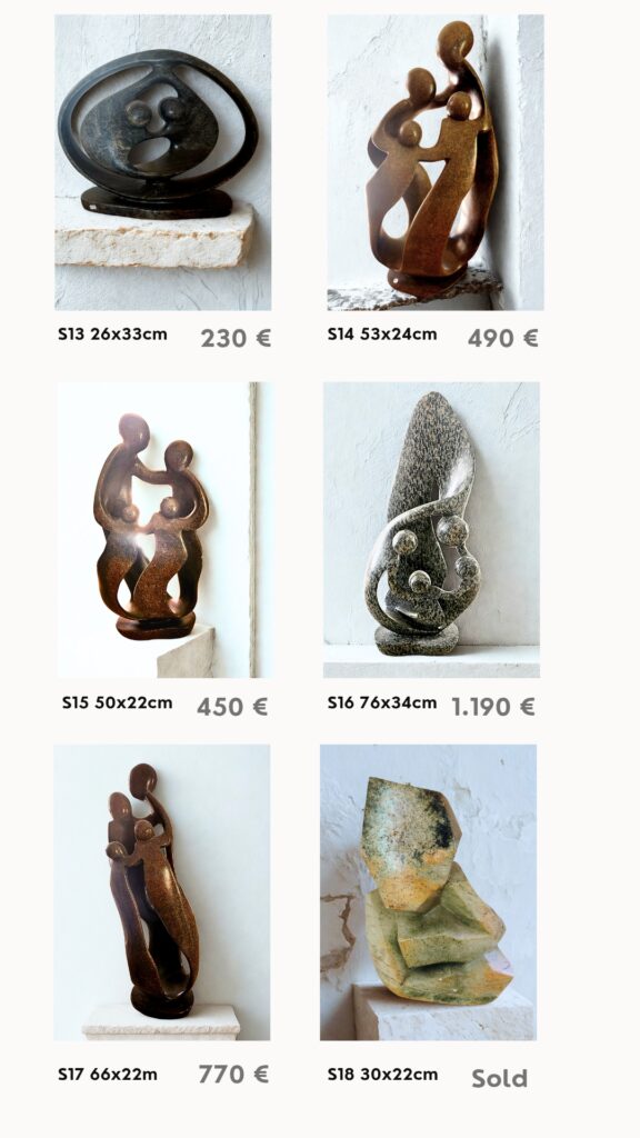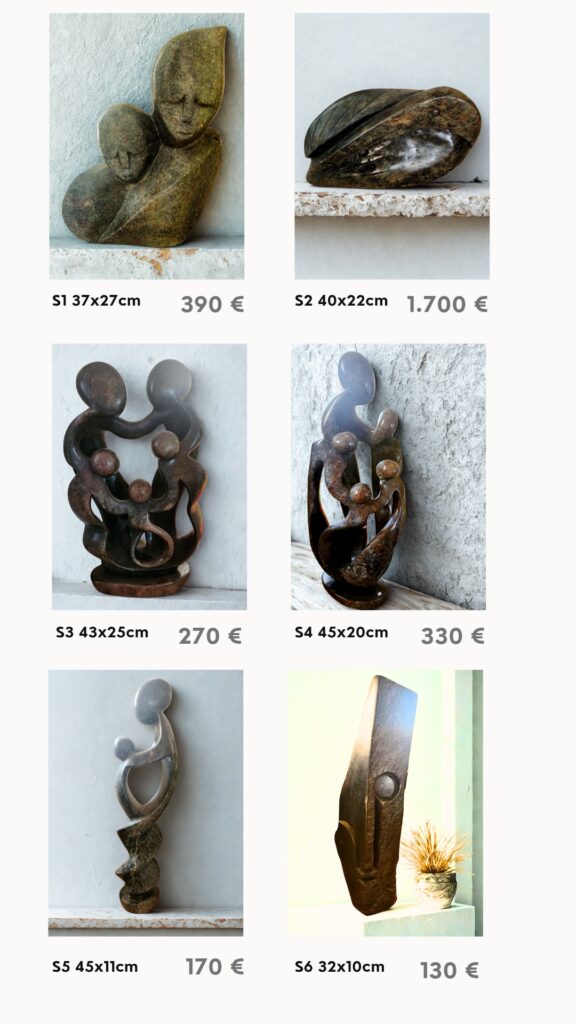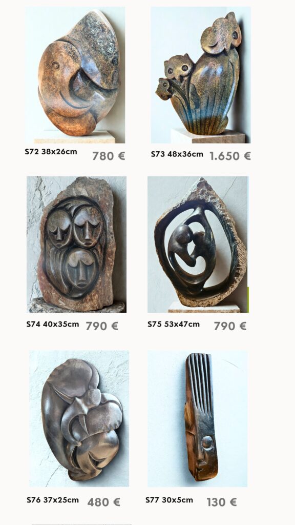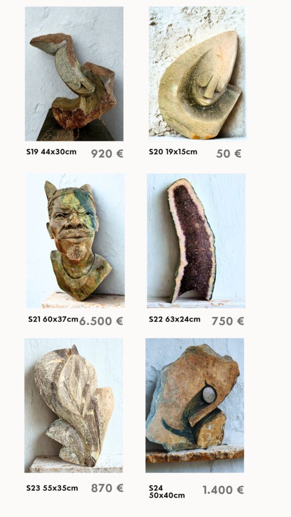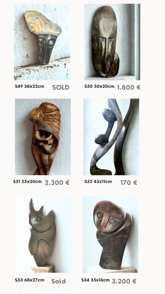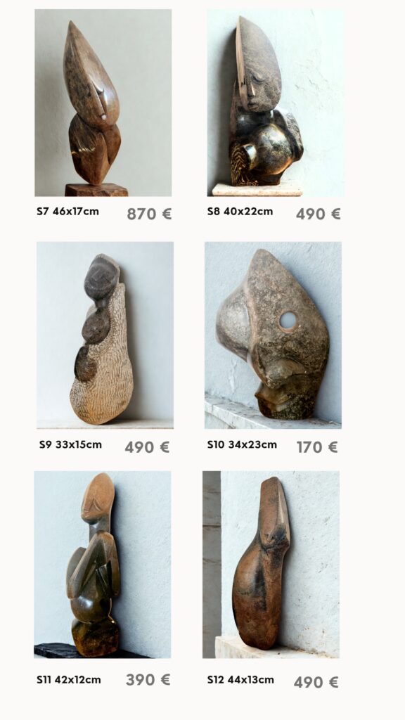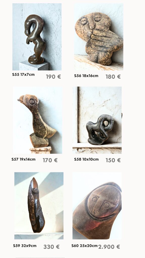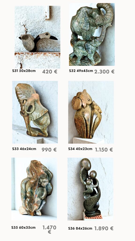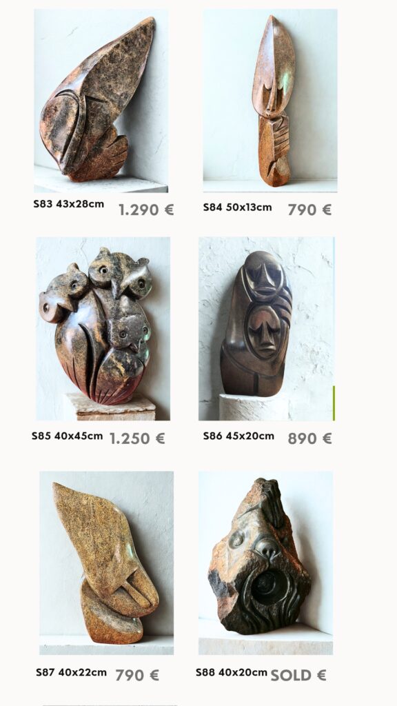 Sculptures by contemporary artists from Zimbabwe! Material: stone (serpentinite or verdite)