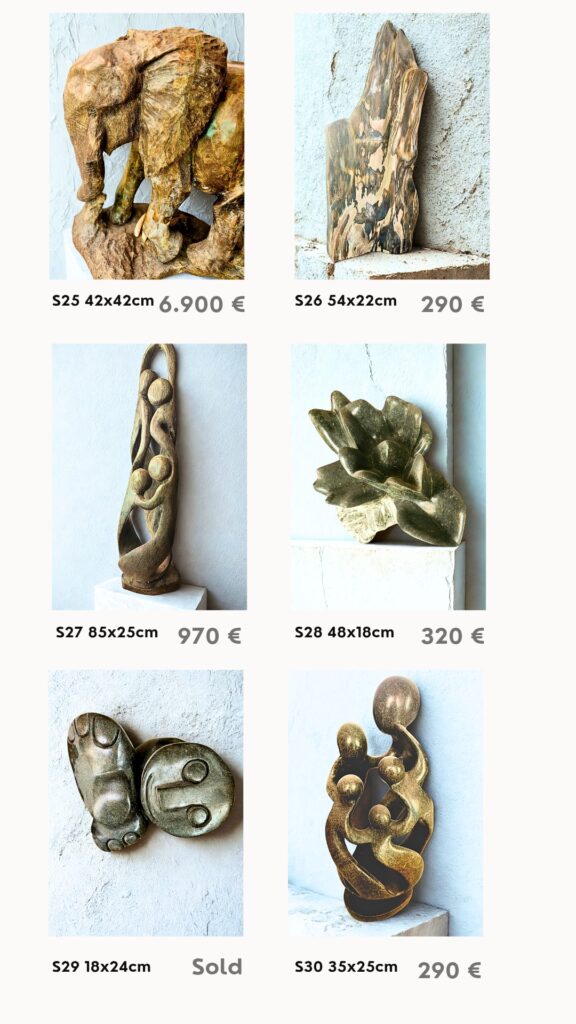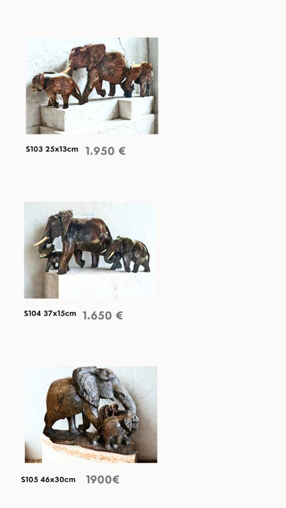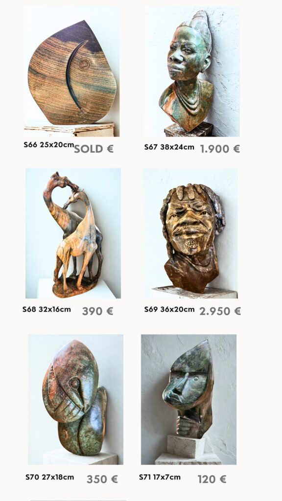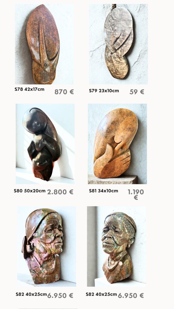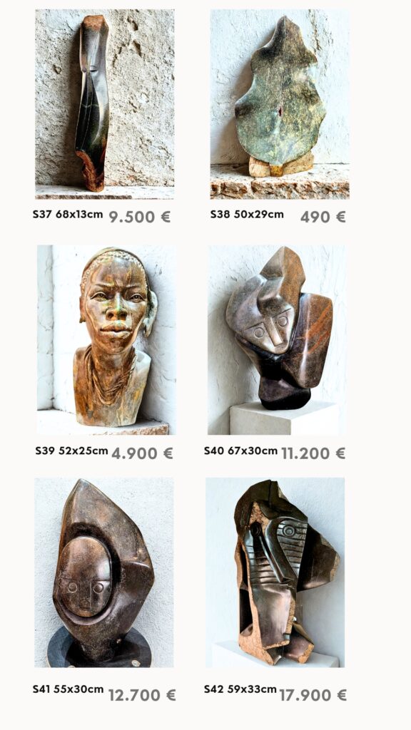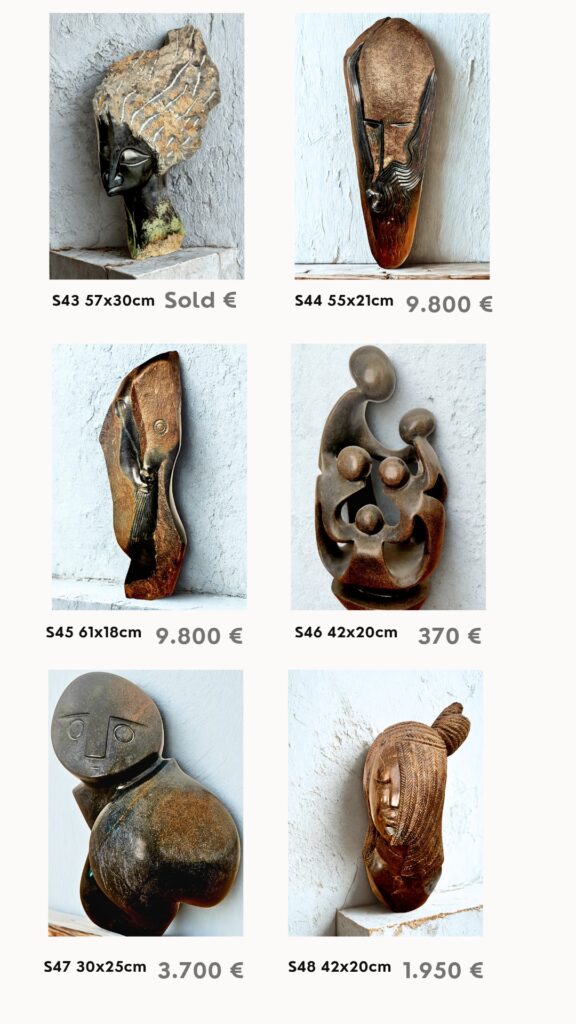 The sculptures come from my personal collection, which I have built up during my travels through Africa. Some of them are available for purchase. The PDF catalogue can be downloaded from this page. You can request further information, e.g. on worldwide shipping costs, in the contact field (kontakt@irisbardo.com).